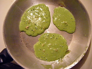 To satisfy my craving for pancakes the other night, while understanding that I really needed to eat some vegetables, I ended up with Green Pancakes.