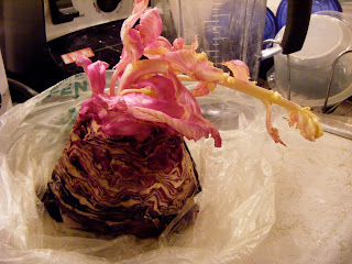 Otherwise known as what happens when you leave a quarter head of red cabbage in the back of the refrigerator and proceed to forget that it exists.